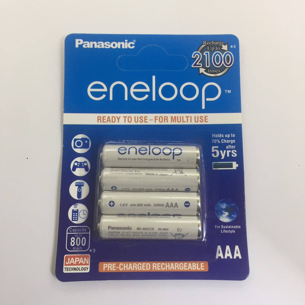 + Pin sạc AAA Panasonic eneloop tiêu chuẩn : min 800 mAh
