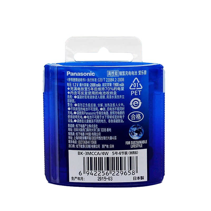 Theo thông tin từ Panasonic, khi sạc đầy, những viên pin Nickel-Metal Hydride AA (mã hiệu HRM03) và AAA (mã HRM6) nhãn hiệu Eneloop thế hệ mới sẽ duy trì năng lượng lên đến 70% khả năng lưu trữ khi ở tình trạng không sử dụng lên đến 5 năm, và nếu không dùng nó trong vòng 1 năm chúng chỉ hao hụt mất 10% năng lượng.