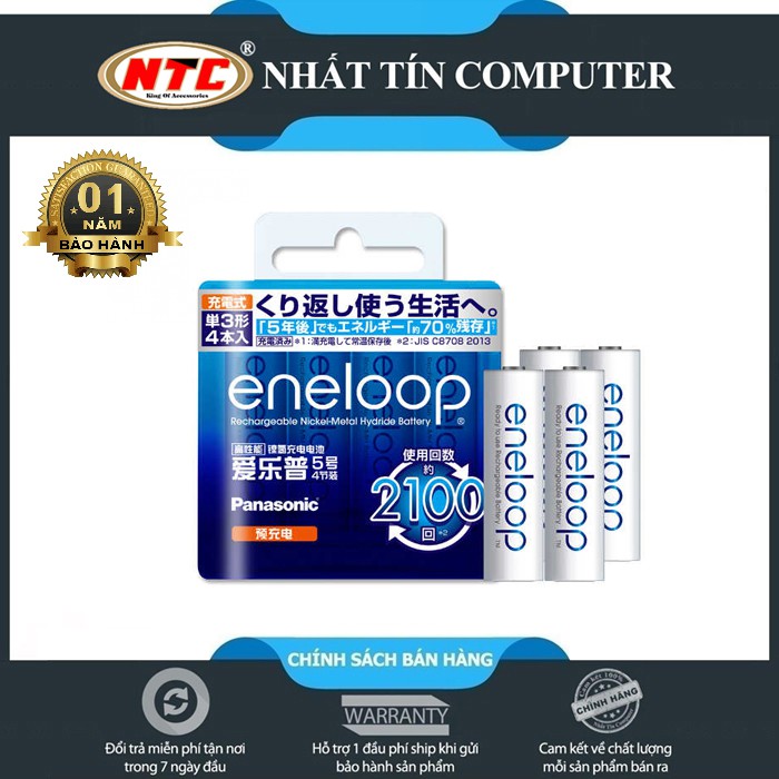 Cameras & Flycam > Phụ kiện máy ảnh > Đế pin || [Mã 253ELSALE hoàn 7% đơn 300K] Vỉ 4 pin sạc AA Eneloop 1900mAh BK-3MCCA/4W - phiên bản nội địa box Nhật (Trắng)Còn hàng