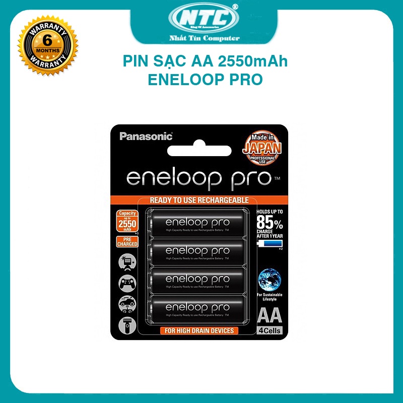 Giới thiệu Vỉ 4 pin sạc AA Eneloop Pro 2550mAh BK-3HCCE/4BT box Anh new - made in Japan (Đen) Nhất Tín Computer