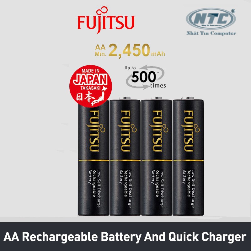 Cameras & Flycam > Phụ kiện máy ảnh > Bộ sạc pin || [Mã 253ELSALE hoàn 7% đơn 300K] Vỉ 4 pin sạc AA Fujitsu 2450mAh made in JAPAN - nội địa Nhật Bản (đen)Còn hàng