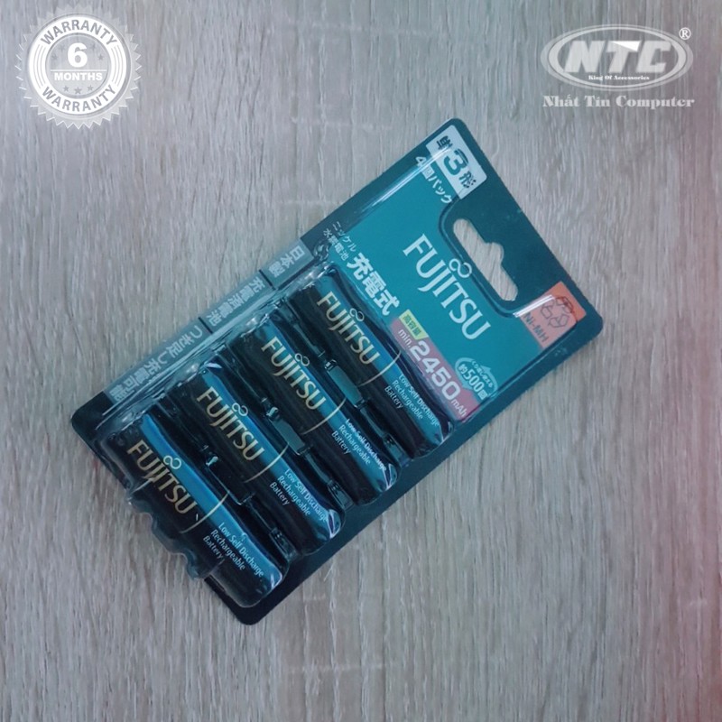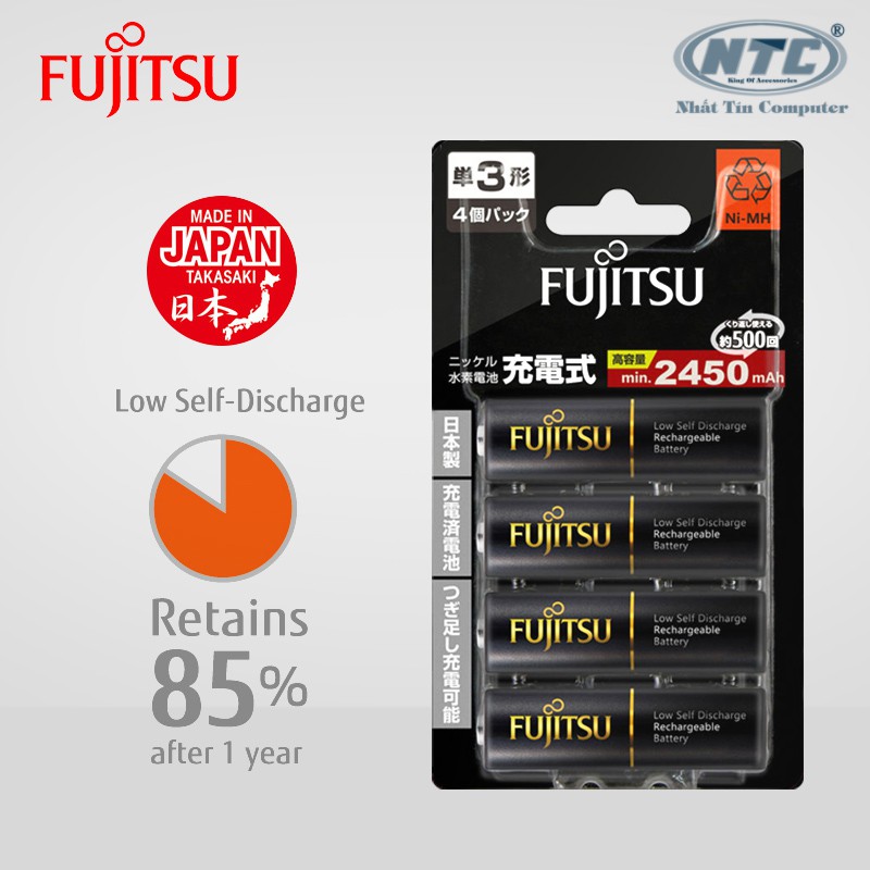 Vỉ 4 pin sạc AA Fujitsu 2450mAh made in JAPAN - nội địa Nhật Bản (đen)