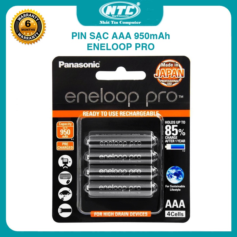 Vỉ 4 pin sạc AAA Eneloop Pro 950mAh BK-4HCCE/4BT box Anh new - made in Japan (Đen) Nhất Tín Computer