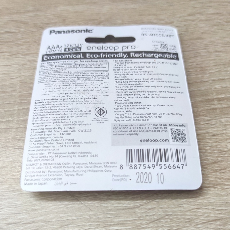 Hãng Sản Xuất: Eneloop (đóng gói tại nhà máy Panasonic Việt Nam)