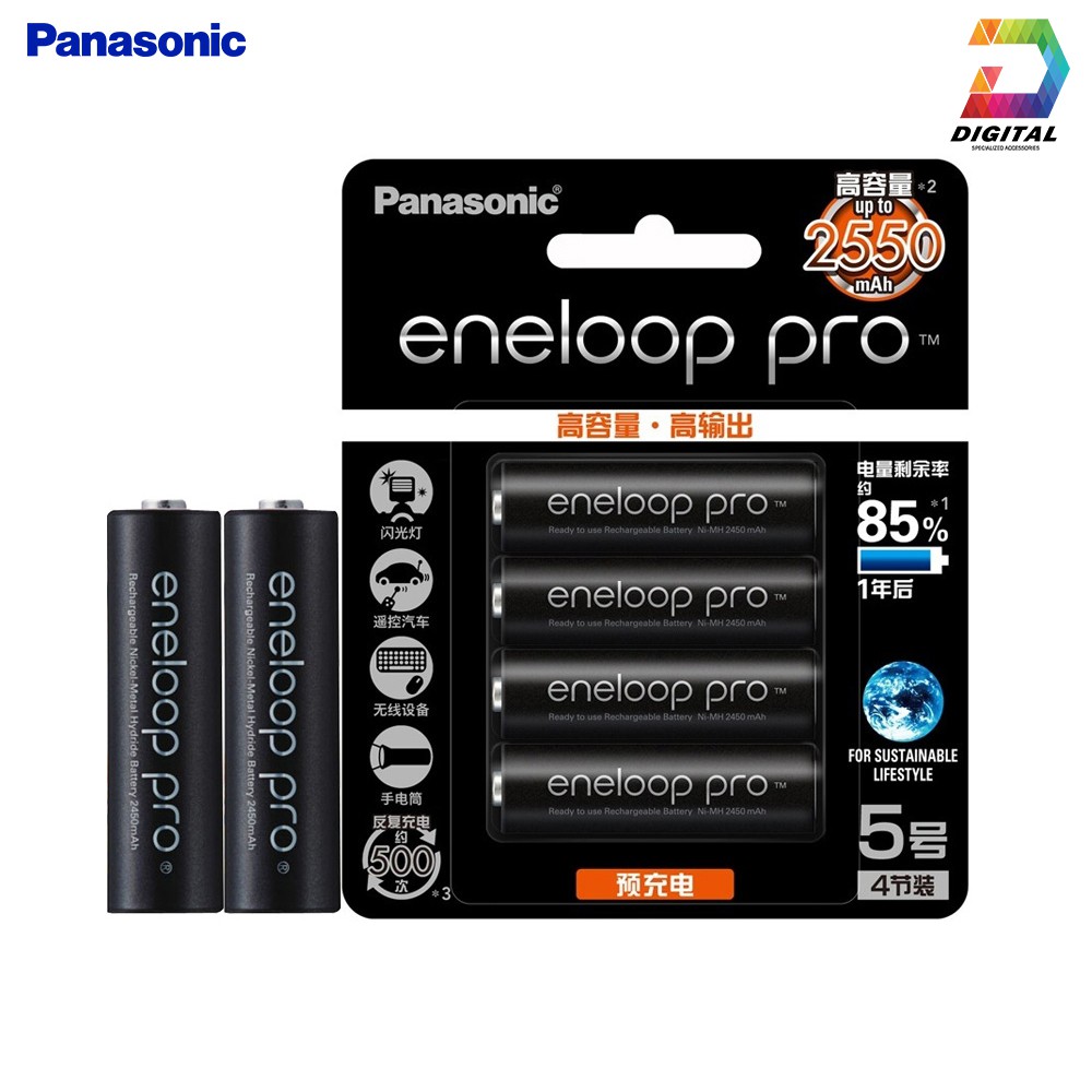 Dòng pin sạc AA PANASONIC ENELOOP Pro 2550mAh ( BK-3HCCA/4BW ) được Panasonic cho ra đời để hỗ trợ cho các thiết bị điện tử cần nguồn năng lượng cao, mạnh và thường xuyên như máy chụp hình, đèn flash, máy đo huyết áp, đèn pin, remote, radio, ….