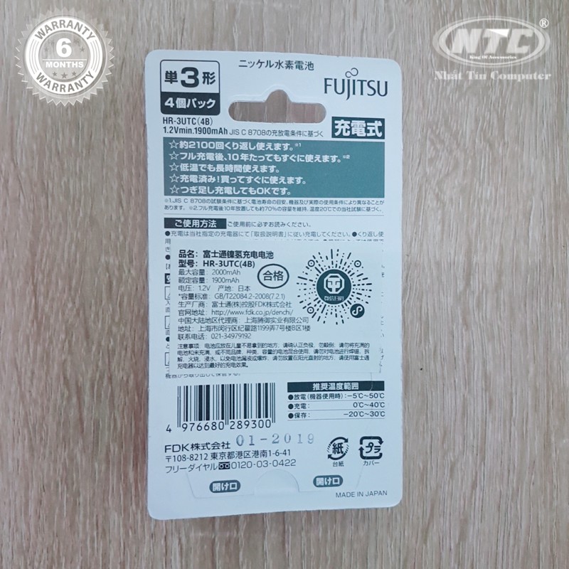 Vỉ 4 viên pin sạc AA Fujitsu 1900mAh made in JAPAN - nội địa Nhật Bản (trắng)