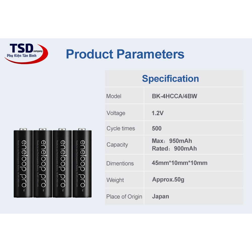 Thông tin sản phẩm pin sạc AAA PANASONIC- ENELOOP Pro. ( BK-4HCCA/4BW ):