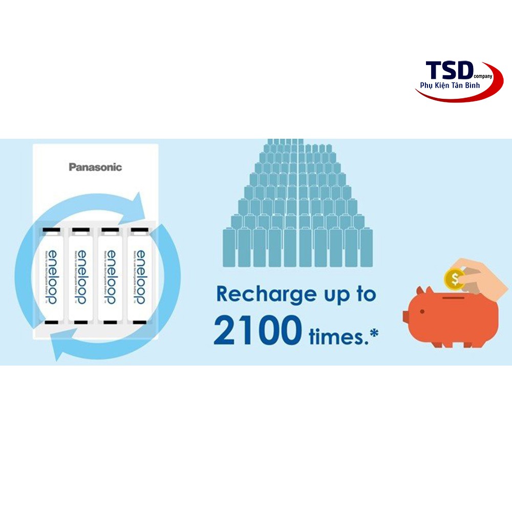 - Loại pin sạc Eneloop có thể sạc lại , tự xả pin, tái sạc 2100 lần.