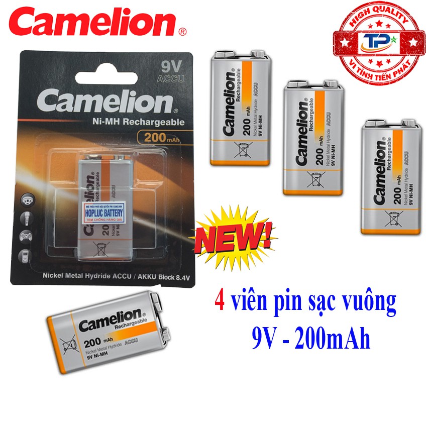 Số lượng: Vỉ 4 viên pin sạc vuông 9V dung lượng 200mAhThương hiệu: Camelion của Đức