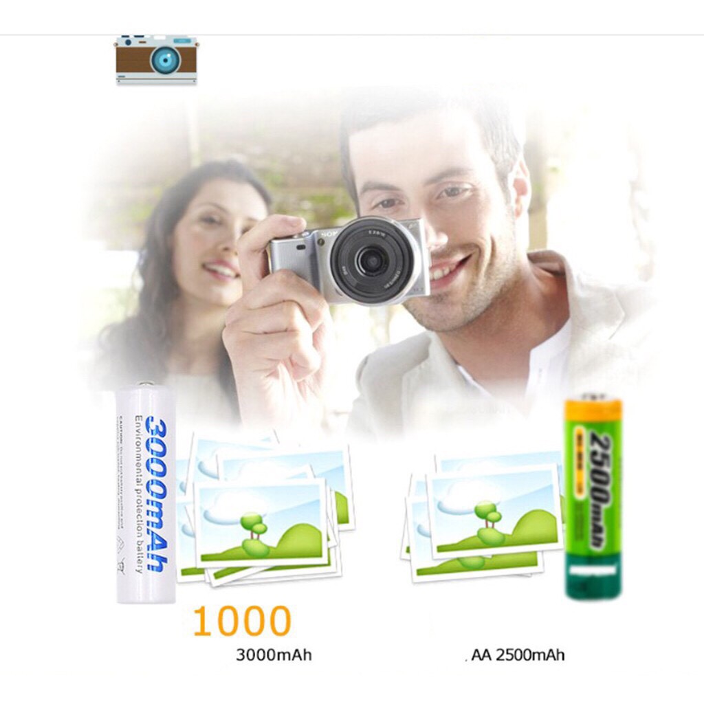 Cameras & Flycam > Phụ kiện máy ảnh > Bộ sạc pin || Vỉ 4 Viên Pin Tiểu Sạc Palo AA Ni-MH 3000mAh Cho Máy Ảnh, Ô Tô Điều Khiển...Còn hàng