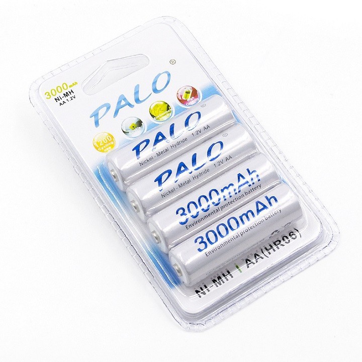 Vỉ 4 Viên Pin Tiểu Sạc Palo AA Ni-MH 3000mAh Cho Máy Ảnh, Ô Tô Điều Khiển...