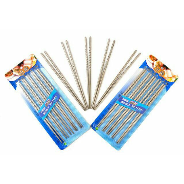 Nhà cửa & Đời sống > Bộ đồ bàn ăn > Bộ dao kéo || Vỉ 5 đôi đũa Inox xoắnCòn hàng
