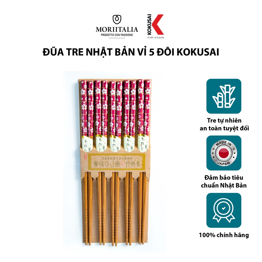 Nhà cửa & Đời sống > Bộ đồ bàn ăn > Bộ dao kéo || Vỉ 5 đôi đũa tre Kokusai Nhật Bản an toàn, chất liệu tre tự nhiên Moriitalia NDCK-05BCòn hàng