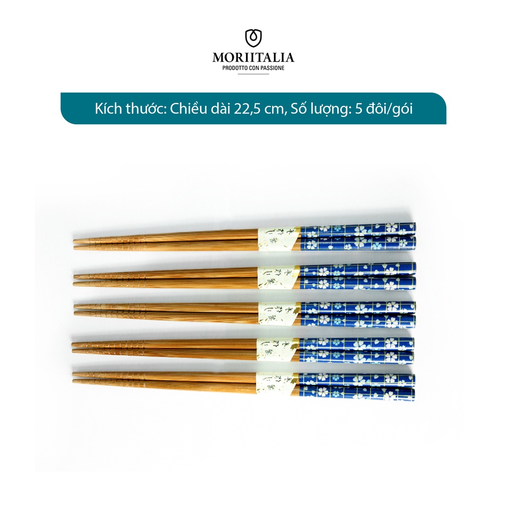 Vỉ 5 đôi Đũa tre Kokusai 100% tre tự nhiên, chịu nhiệt và chống trơn cực tốt chính hãng Moriitalia NDCK-05A