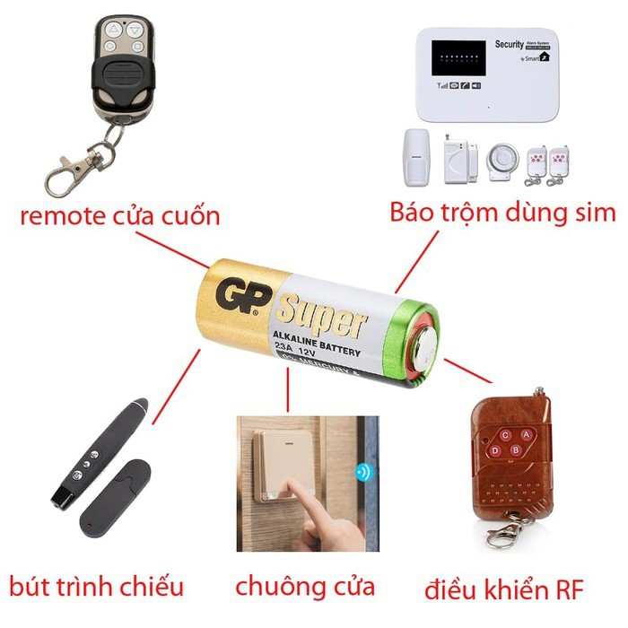 Nhà cửa & Đời sống > Dụng cụ & Thiết bị tiện ích > Dụng cụ > Khác || Bộ vỉ 5 pin GP 23A 12V cho cửa cuốn ,chuông cửa, điều khiển từ xa sóng radio RF,bút trình chiếu, báo trộm dùng simCòn hàng