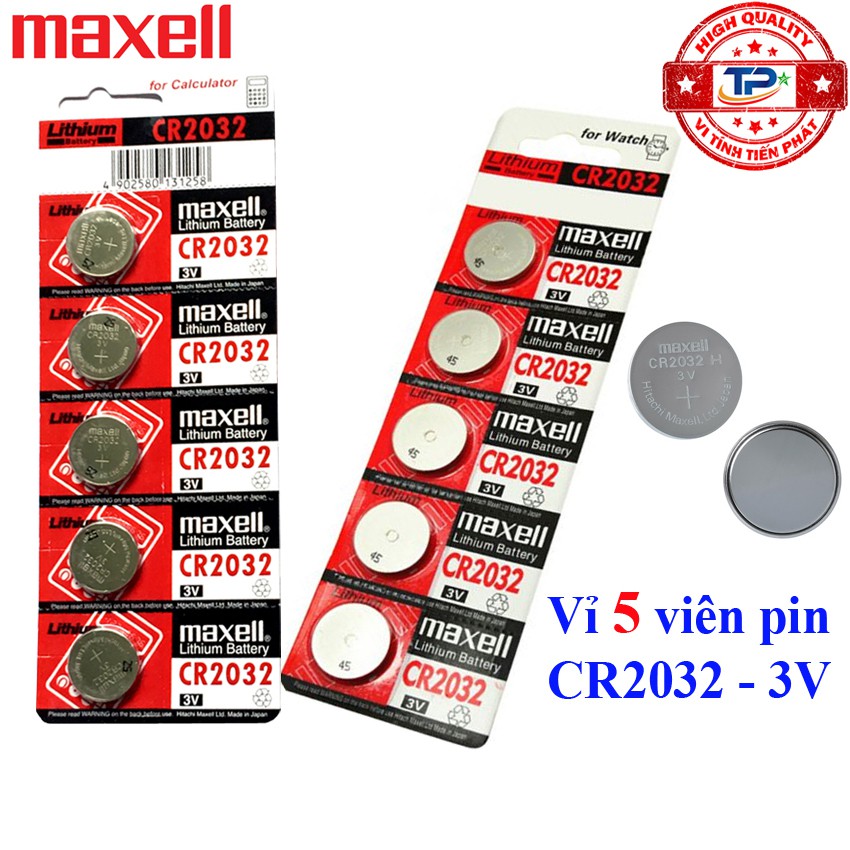 Vỉ 5 viên pin CMOS CR2032 Maxell Lithium Battery 3V