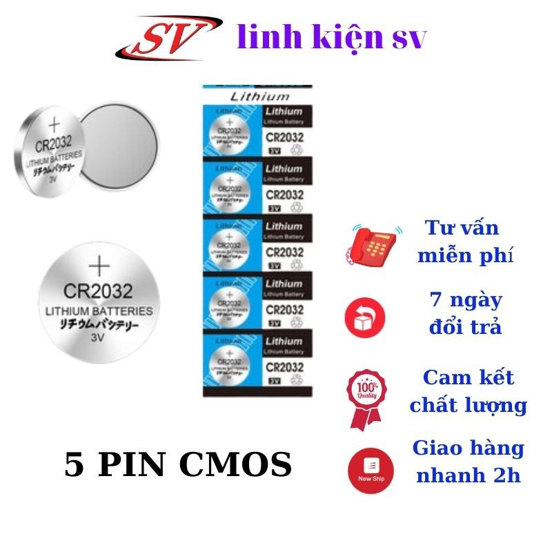 Combo 5 Viên Pin Cmos CR2032 - Pin 3V - Pin Tròn - Pin Loại Tốt cho máy tính, laptop, các thiết bị điện, đồng hồ, CMOS, Remote bluetoothChi tiết sản phẩmPin Cmos Cho Laptop, Đồng Hồ Loại Tốt