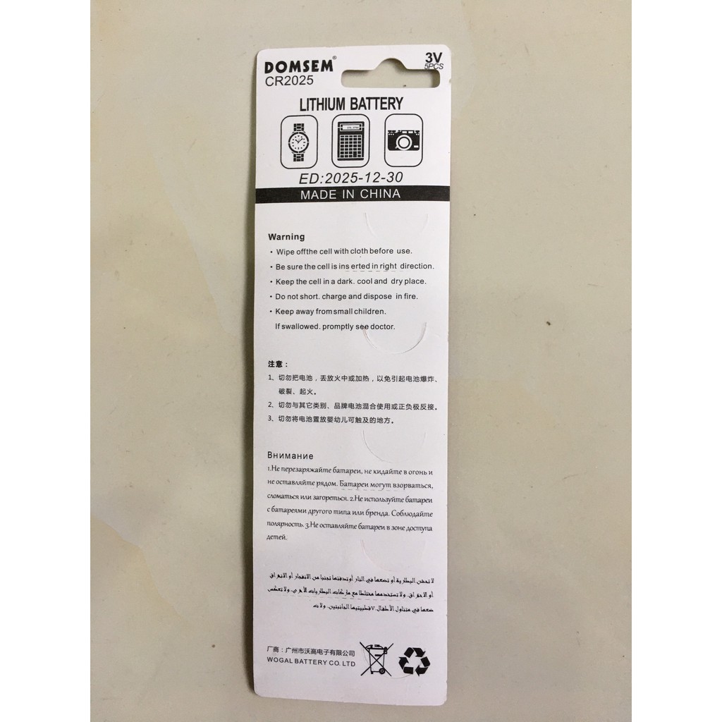 Tên sản phẩm : Vỉ 5 viên pin Domsem CR2025Công dụng : Sử dụng cho các thiết bị điện , điện tử , CMOS (PC , Laptop) , Remote(điều khiển)..
