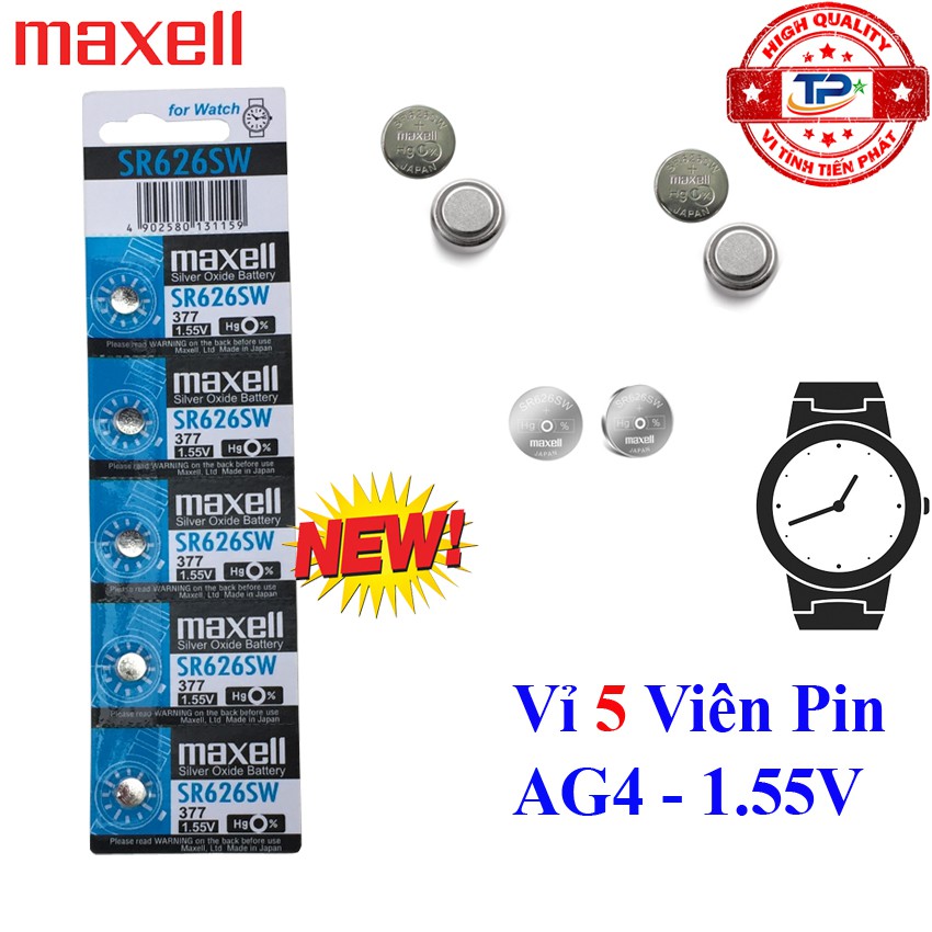 Cameras & Flycam > Phụ kiện máy ảnh > Bộ sạc pin || Vỉ 5 viên Pin đồng hồ đeo tay AG4 / LR66 / LR626 / SR626SW /377 Maxell Sliver Oxide battery 1.55V - Pin nút áoCòn hàng