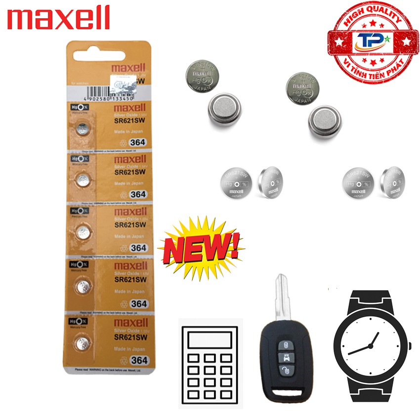 Cameras & Flycam > Phụ kiện máy ảnh > Bộ sạc pin || Vỉ 5 viên Pin đồng hồ đeo tay AG1 / LR60 / LR621 / SR621SW / 364 / 164 / SR60 / SR621 Maxell Sliver Oxide battery 1.55VCòn hàng