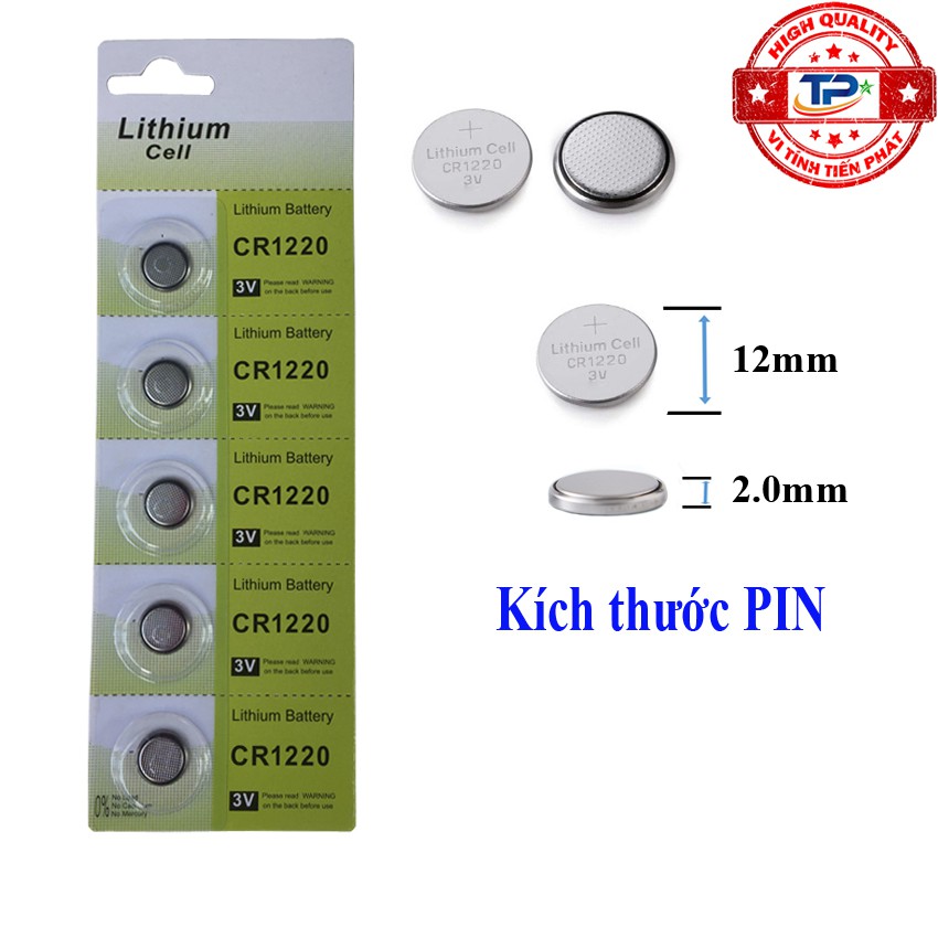 Số lượng: Vỉ 5 viên pin 3V / 1 cụcKiểu Pin: CR1220 tương đương DL1220, ECR1220, GBCR1220, SB-T13 ...