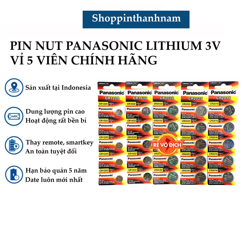 Vỉ 5 viên Pin Panasonic CR2032 / CR1632 / CR2025 / CR1220 / CR1620 / CR2016 / CR1616 / CR2450 chính hãng