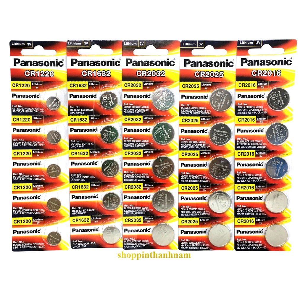 Vỉ 5 Viên Pin Panasonic CR2032 / CR2025 / CR2016 / CR1632 / CR1220 / CR1620 / CR1616 Pin 3V Lithium Made in Indonesia