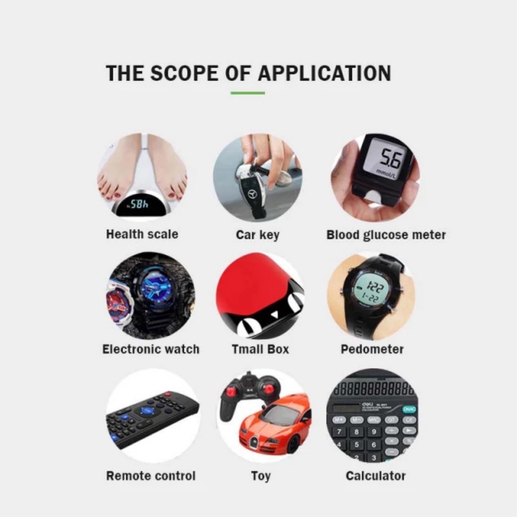 Kích thước: Pin có độ dày 2mm, đường kính 9.5mm