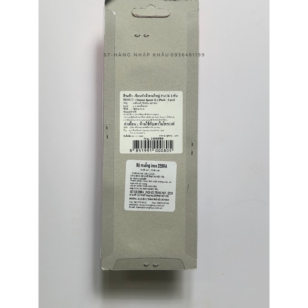 Vỉ 6 thìa ZEBRA inox 304 Thái lan đủ size hàng công ty