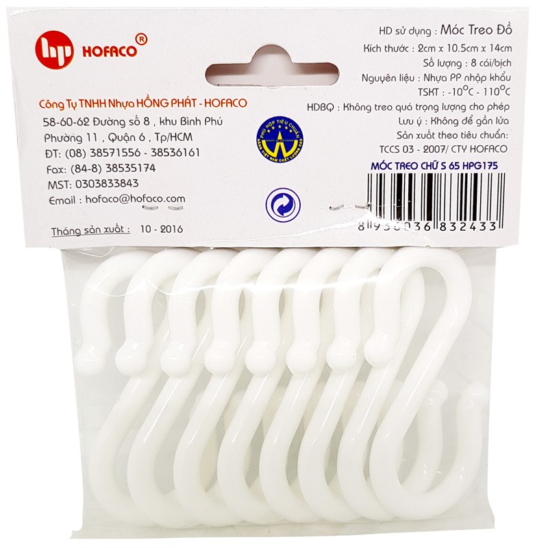 Nhà cửa & Đời sống > Sắp xếp nhà cửa > Móc treo || Vỉ 8 móc chữ S Hofaco G175 (6,5cm - 1,5kg)Còn hàng