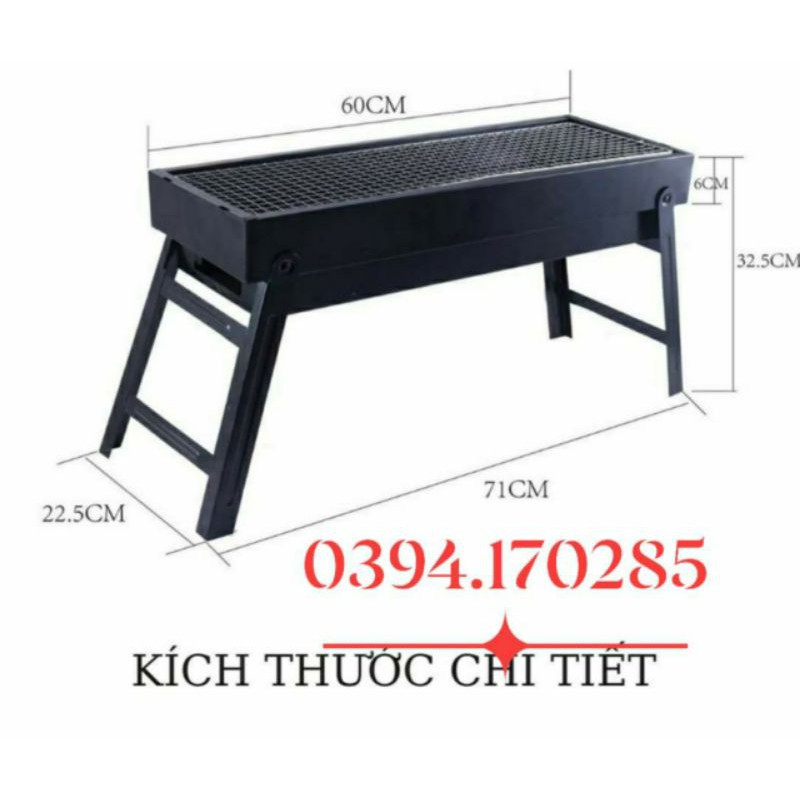 Bếp nướng than hoa kết cấu khung thép sơn tĩnh điện chịu nhiệt, vỉ inox 304 có thể gấp gọn dễ dàng. Bếp thích hợp cho các buổi tiệc nướng gia đình, đi du lịch, picnic....