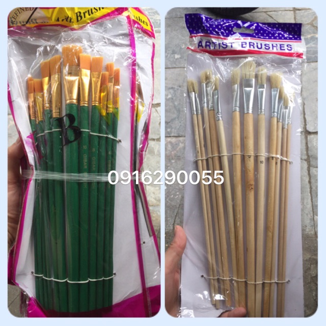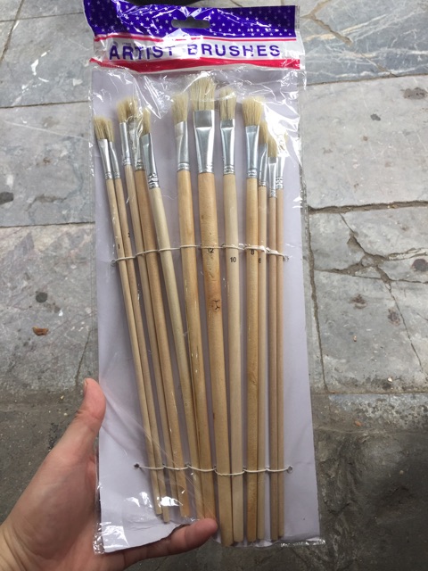 Bút chuyên dùng cho ngành sơn, tô tượng...1 vỉ gồm 12 chiếc đủ kích thước thích hợp cho nhiều loại hình nghệ thuật khác nhau
