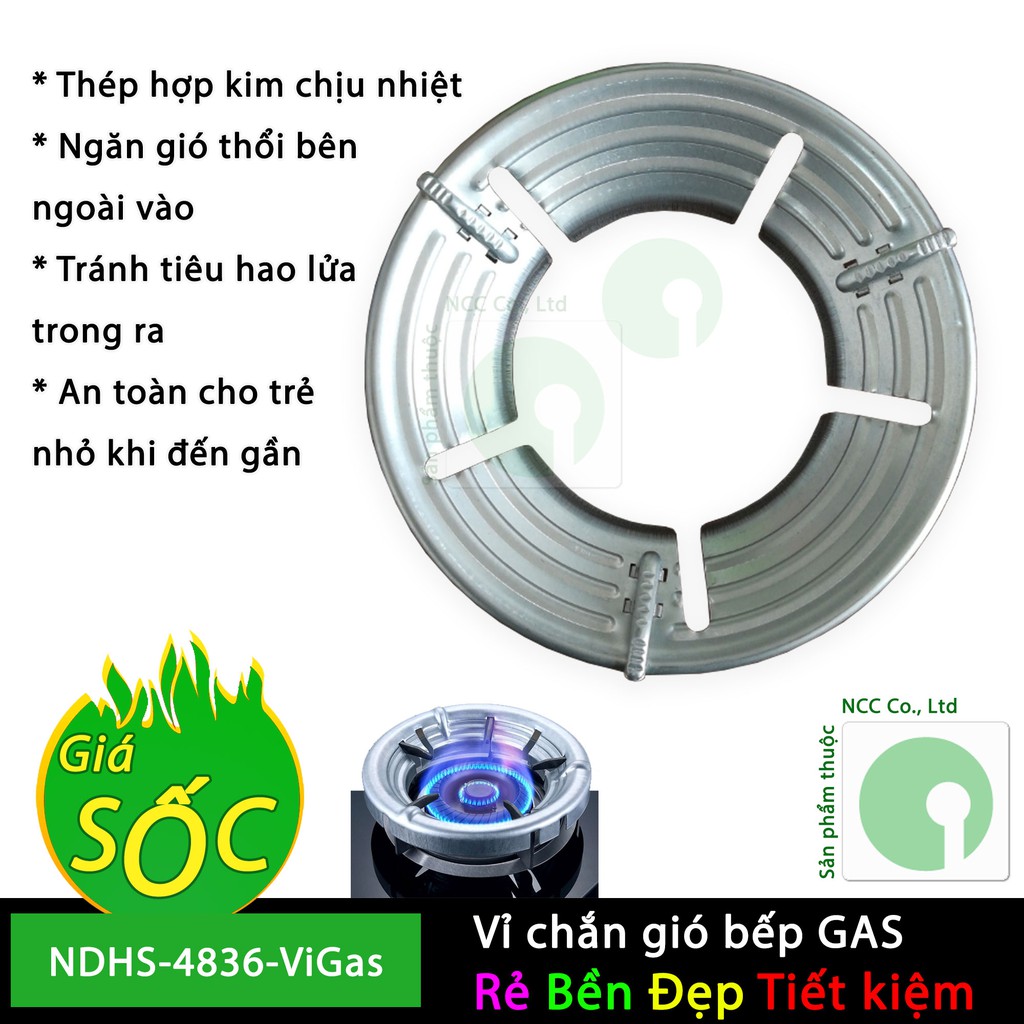 Giới thiệu Vỉ chắn gió bếp gas bằng thép hợp kim - giảm bớt hao hụt ga khi sử dụng - NDHS-4836-ViGas