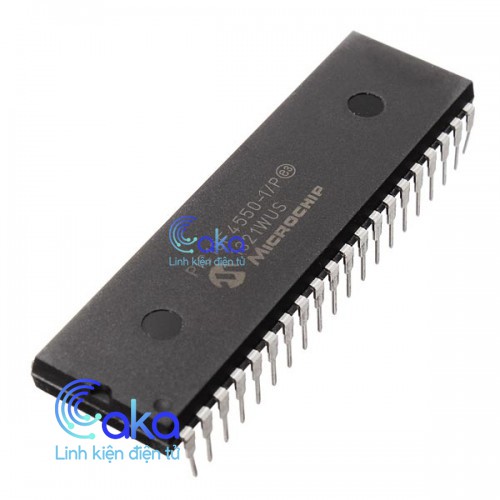 Pic18f4550 là một chíp vi điều khiển được sản xuất bời hãng Microchip thuộc họ Pic. Pic18f4550 là một bộ vi điều khiển 8 bit dựa trên kiến trúc RISC bộ nhớ chương trình 32KB ISP flash có thể ghi xóa hàng nghìn lần, 256B EEPROM, một bộ nhớ RAM vô cùng lớn trong thế giới vi xử lý 8 bit (2KB SRAM)Với 33 chân có thể sử dụng cho các kết nối vào hoặc ra i/O, 32 thanh ghi, 3 bộ timer/counter có thể lập trình, có các gắt nội và ngoại (2 lệnh trên một vector ngắt), giao thức truyền thông nối tiếp USART, SPI, I2C. Ngoài ra có thể sử dụng bộ biến đổi số tương tự 10 bít (ADC/DAC) mở rộng tới 12 kênh, khả năng lập trình được watchdog timer, hoạt động với 5 chế độ nguồn, có thể sử dụng tới 2 kênh điều chế độ rộng xung (PWM)……