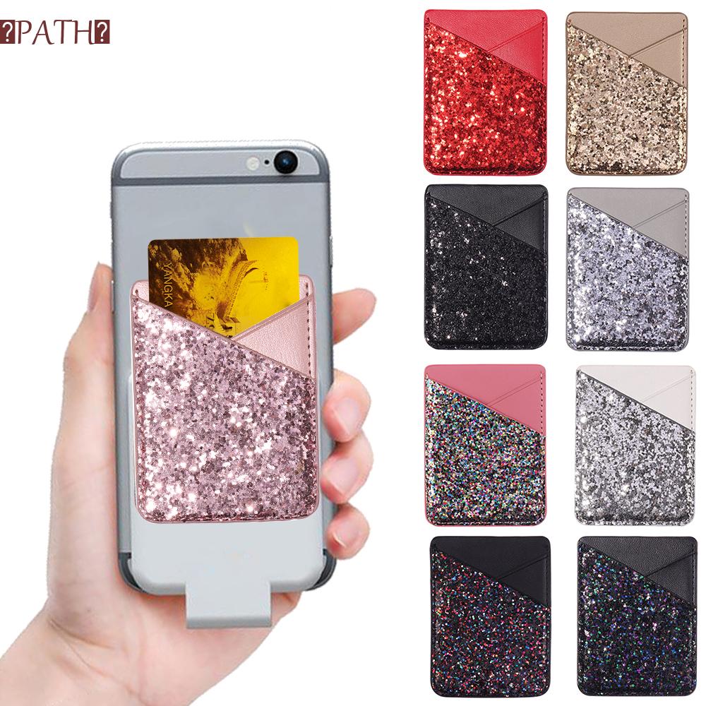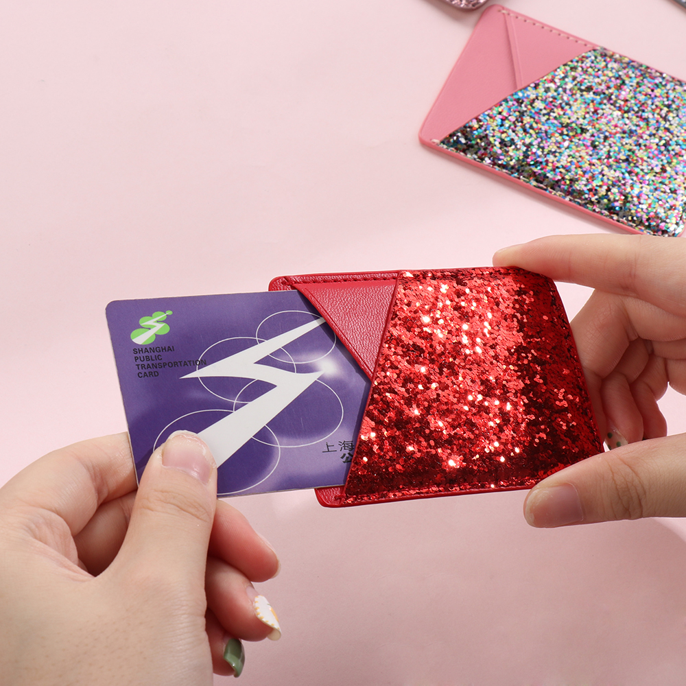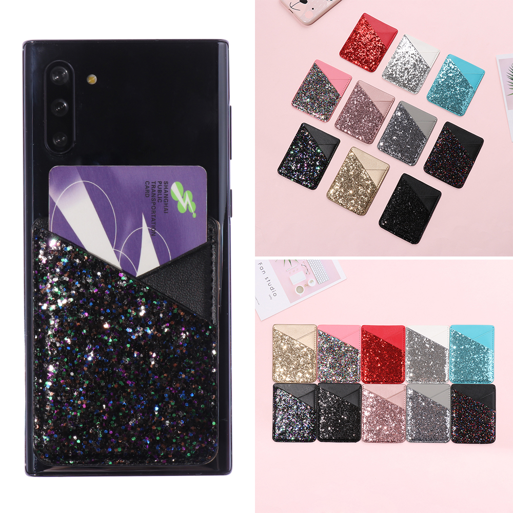 Ví đựng thẻ bằng da đính kim sa lấp lánh dán điện thoại