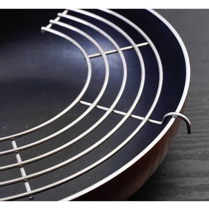 🎈Vỉ với thiết kế thông minh, có 3 chân gác vững chắc trên thành chảo, các thanh inox được uốn tròn để không chiếm diện tích cản trở việc nấu nướng.