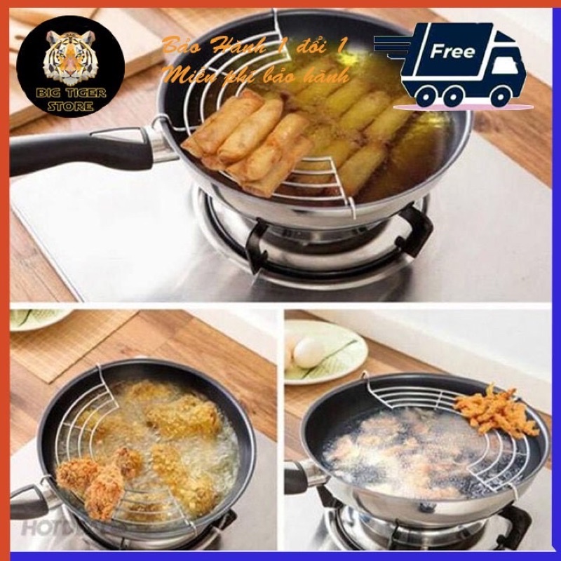 Vỉ gác chảo Chiên Dán dầu mỡ loại dày bằng inox cỡ 24-26cm