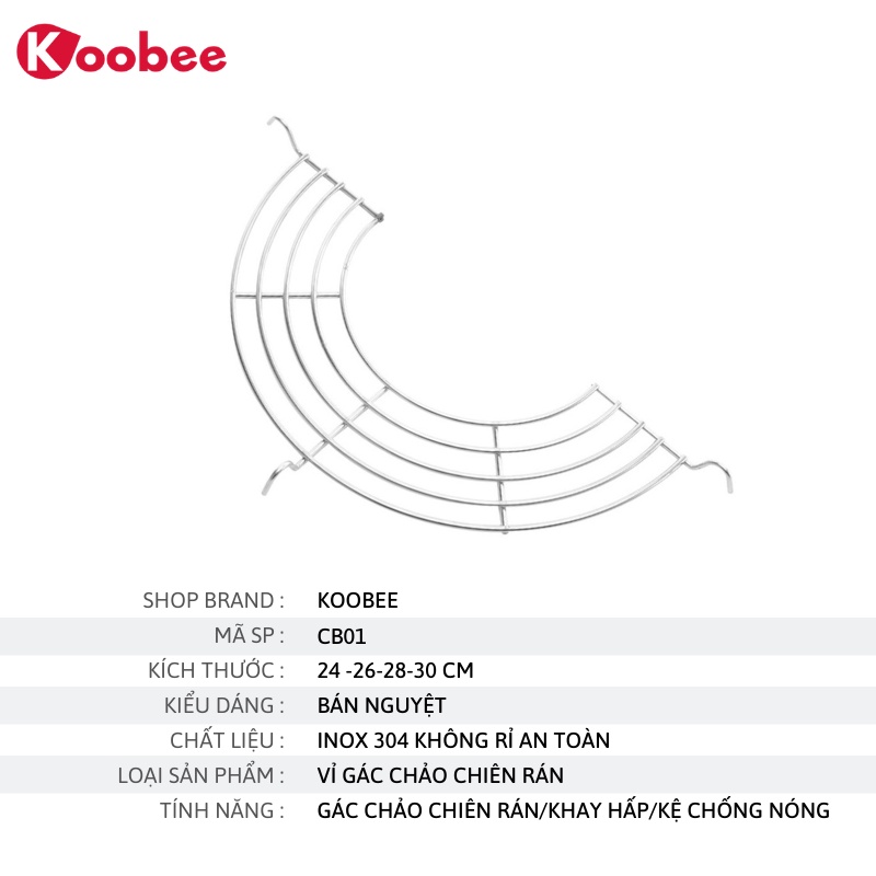 Nhà cửa & Đời sống > Dụng cụ nhà bếp > Chảo || Vỉ gác chảo chiên rán bán nguyệt KOOBEE loại dày chất liệu Inox không rỉ an toàn (SC01)Còn hàng