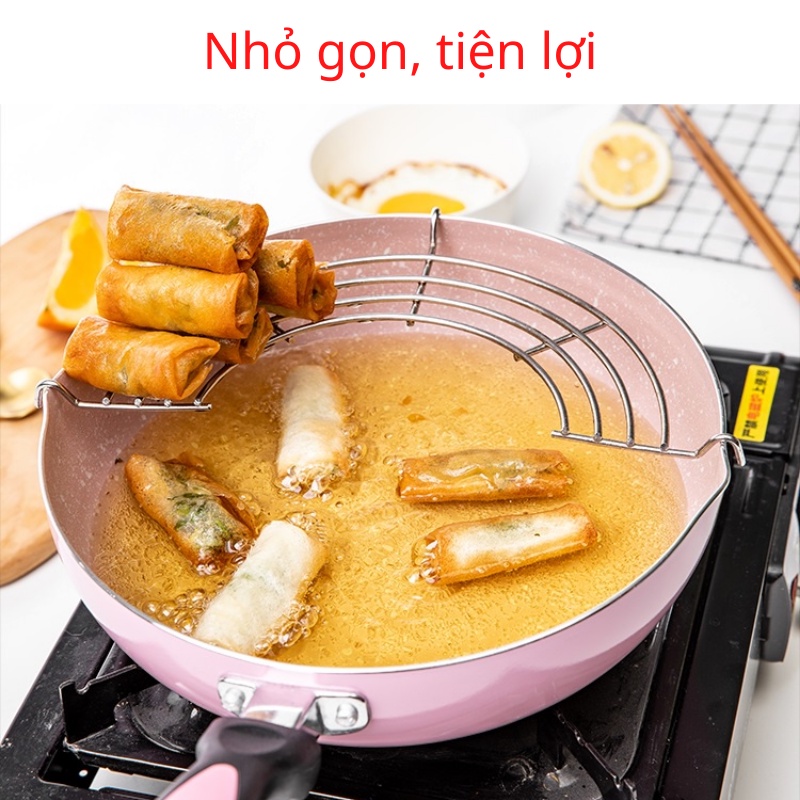 Vỉ gác chảo rán với thiết kế đơn giản nhưng khá tiện ích, giúp bạn đặt thức ăn đã chiên rán lên trên gác cho món ăn luôn thơm ngon, nóng giòn.Thông tin chi tiết sản phẩm