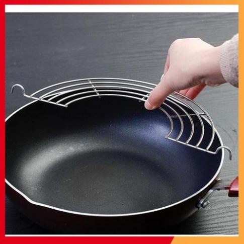 Vỉ gác chảo chiên rán dầu mỡ loại dày cỡ 24 -26cm và 28-30cm, Inox 304 bền đẹp