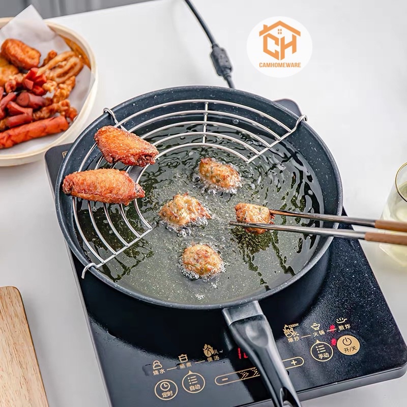 Giới thiệu Vỉ Gác Chảo Chiên Rán Dầu Mỡ Loại Dày Bằng Inox Cam Homeware