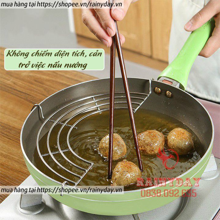 Vỉ gác chảo chiên rán dầu mỡ loại dày bằng inox cỡ 24-26-28-30cmTHÔNG TIN SẢN PHẨM :