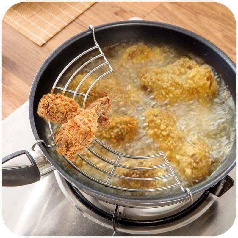 🥨 VỈ GÁC CHẢO BẰNG INOX DÙNG KHI CHIÊN RÁN.🍕♨Vỉ với thiết kế thông minh, có 3 chân gác vững chắc trên thành chảo, các thanh inox được uốn tròn để không chiếm diện tích cản trở việc nấu nướng.