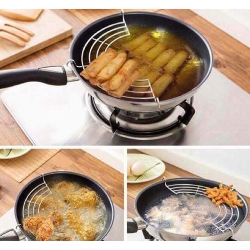 vỉ gác chảo inox dùng khi chiên rán