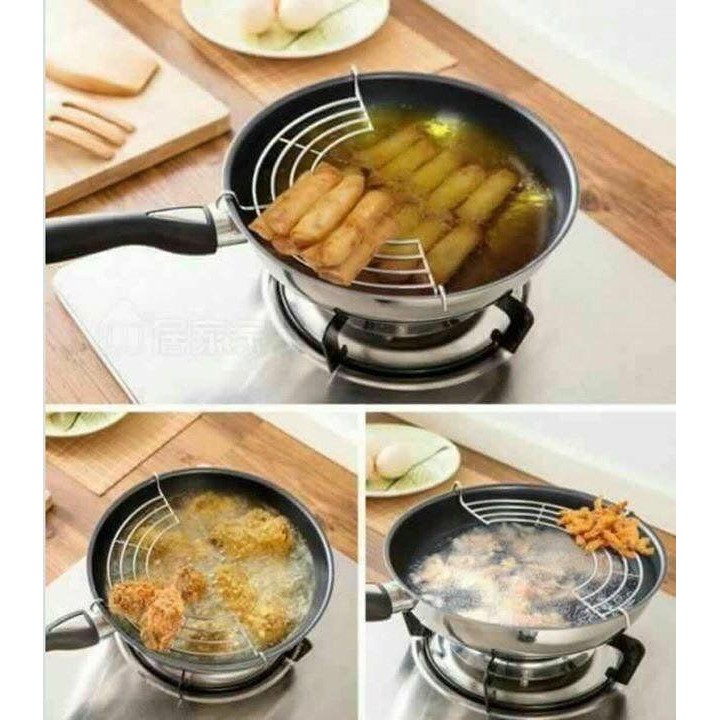 🌼 VỈ GÁC CHẢO BẰNG INOX DÙNG KHI CHIÊN RÁN.♨Vỉ với thiết kế thông minh, có 3 chân gác vững chắc trên thành chảo, các thanh inox được uốn tròn để không chiếm diện tích cản trở việc nấu nướng.