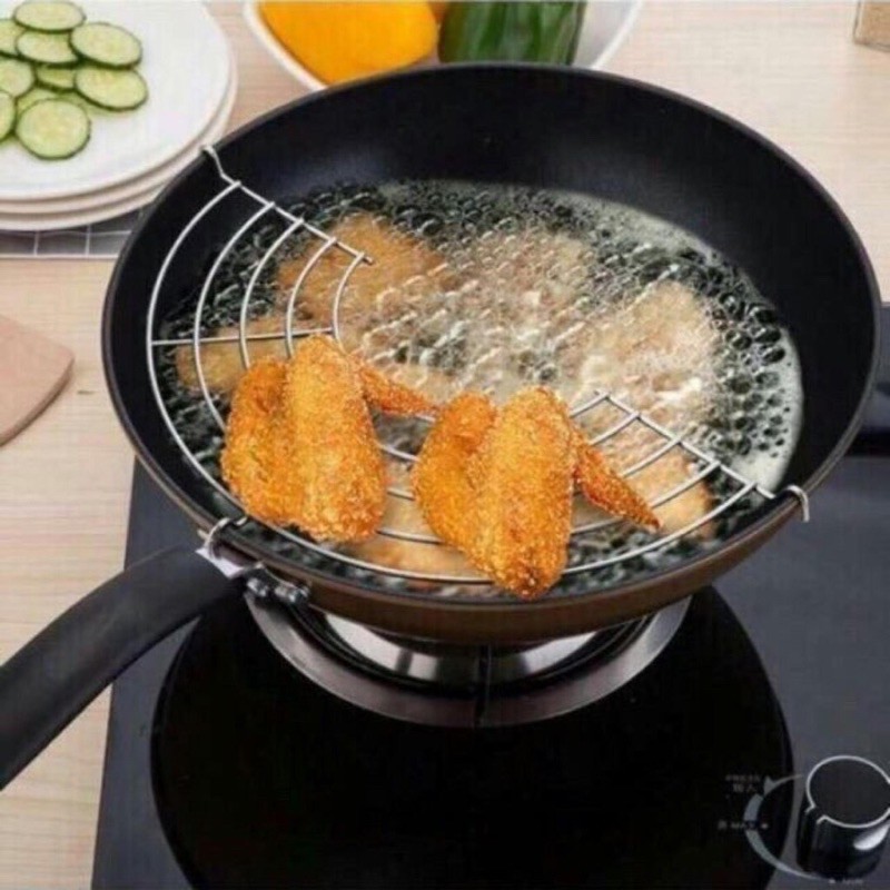 – Vỉ gác chảo rán với thiết kế đơn giản nhưng khá tiện ích, giúp bạn đặt thức ăn đã chiên rán lên trên gác cho món ăn luôn thơm ngon, nóng giòn.