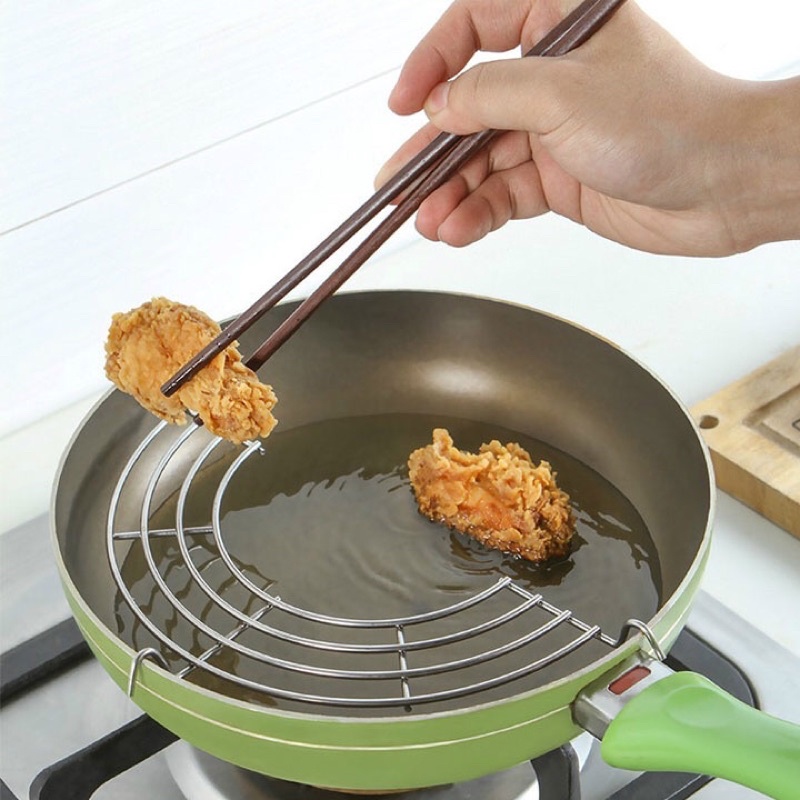 Vỉ gác chảo rán với thiết kế đơn giản nhưng khá tiện ích, giúp bạn đặt thức ăn đã chiên rán lên trên gác cho món ăn luôn thơm ngon, nóng giòn.Chất liệu vỉ inox cao cấp chống gỉ bền đẹp.