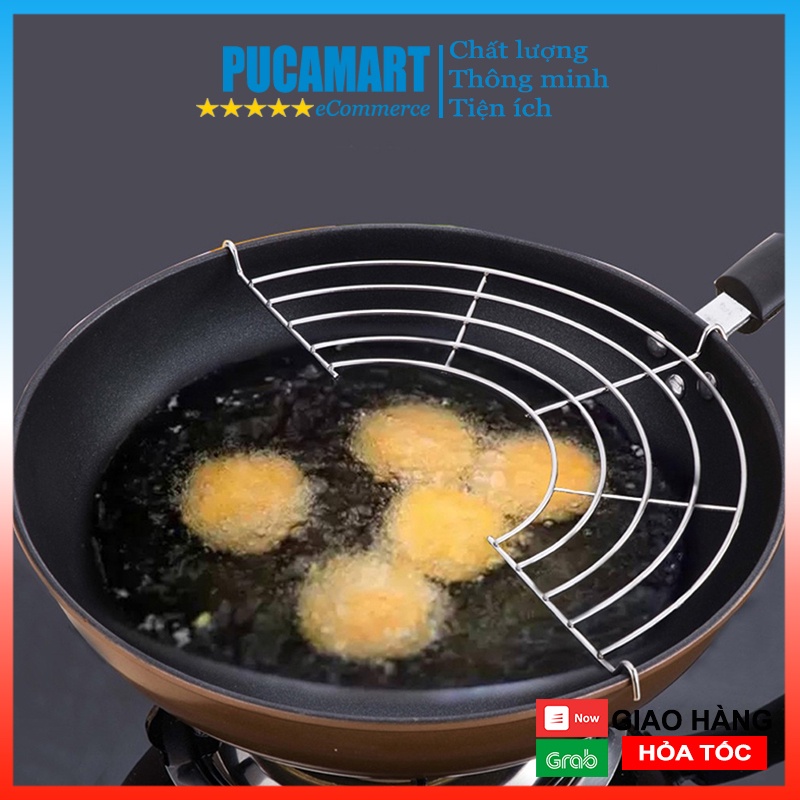 Vỉ Gác Chảo Rán Inox PUCA Cao Cấp (Phi 26-28 cm), Vỉ Gác Đồ Chiên Ráo Dầu Tiện Lợi