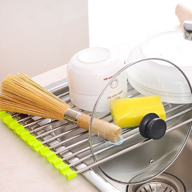 Thiết kế đặc biệt có thể dễ dàng thay đổi độ dài tùy theo nhu cầu, thuận tiện đặt trên bồn rửa chén để xếp gọn các loại dụng cụ như xoong nồi, chảo, chén ly...