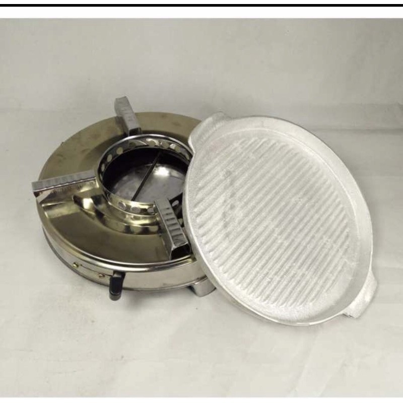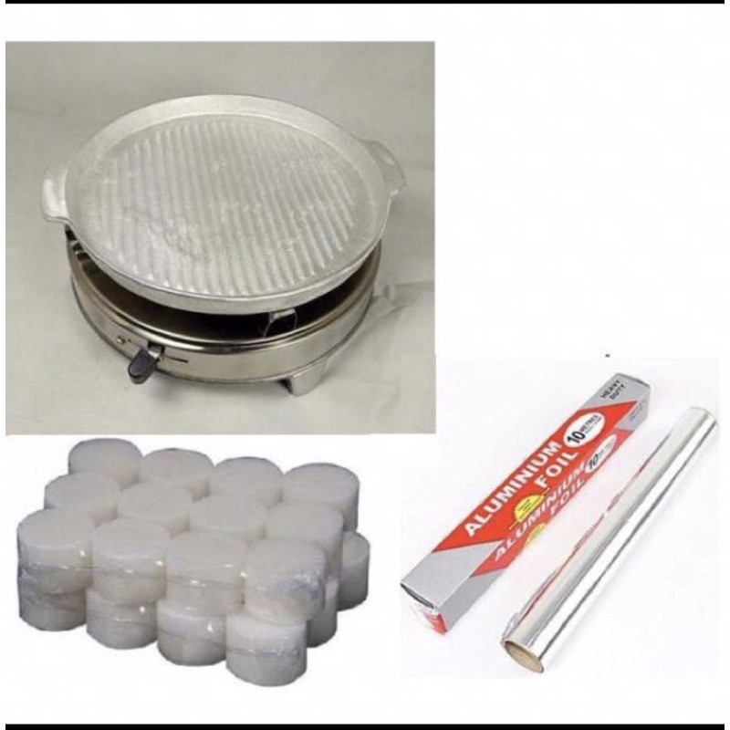 Vỉ gang nướng, Bếp cồn siêu tiện lợiCombo đầy đủ gồm: 1 bếp cồn,1 chảo gang chuyên nướng, giấy bạc bọc, túi 4 cục cồn khô